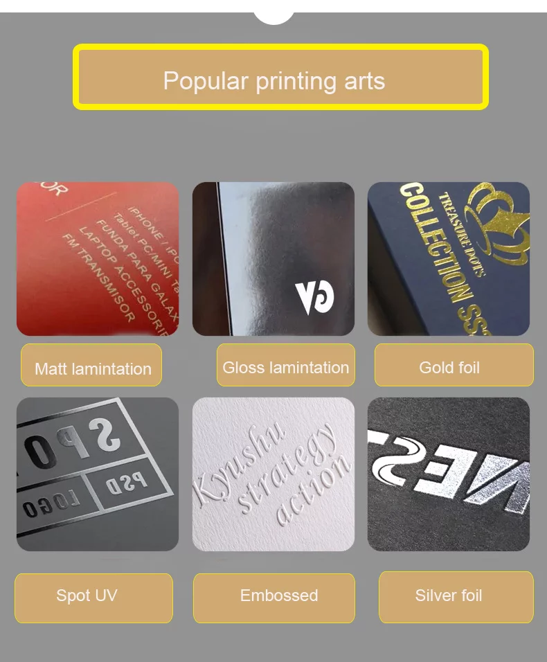 To enhance durability and visual appeal, we offer a range of protective coatings: choose a high-gloss laminated finish for vibrant shine, a sophisticated matte laminate for a velvety, non-reflective look, or a durable scratch-resistant film for materials that need to withstand frequent handling.